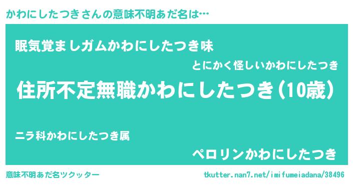 | 欧米人風あだ名 | 『アンジェラ・かわにしたつき』 |