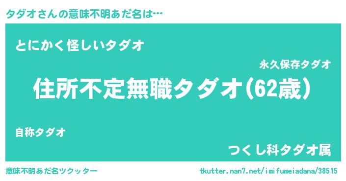 | 女子向けラノベタイトル風あだ名 | 『乙女ゲームの破滅フラグしかない悪役タダオに転生してしまった…』 |