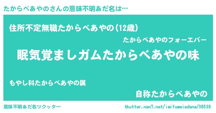 | 胡散臭い通販商品みたいなあだ名 | 『モンドセレクションを受賞したマグネット磁石…その名も「たからべあやの」』 |