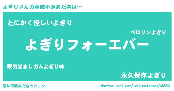| ヘコむあだ名 | 『なまこ酢』『よぎを』『よぎもー』 |