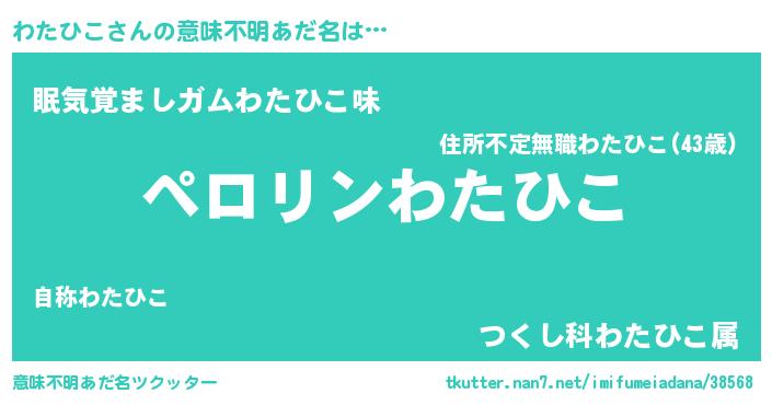 | ピコ太郎風あだ名 | 『ワコ史郎』『ワワ太郎』『ワタ二郎』 |