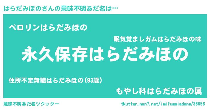 | 男性向けラノベタイトル風あだ名 | 『はらだみほのという概念が存在しない退屈な世界 』 |