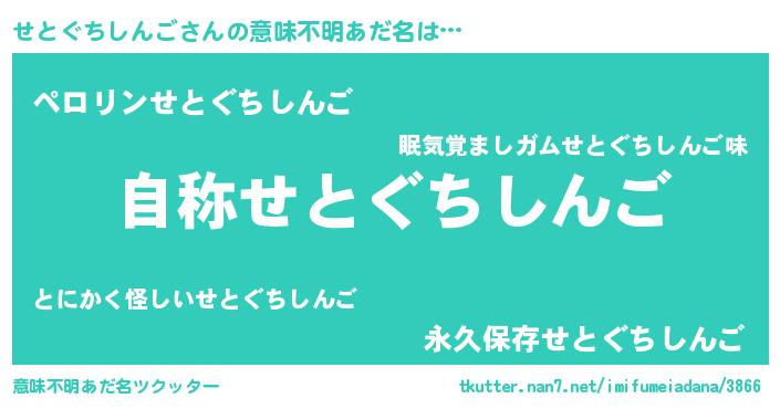 | 欧米人風あだ名 | 『せとぐちしんご・ステッグマイヤー』 |
