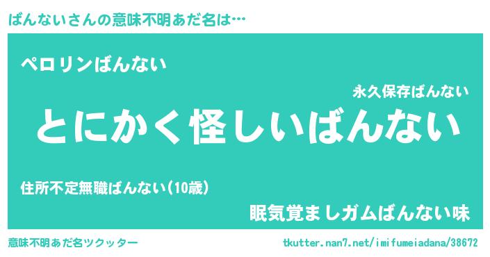 | 男性向けラノベタイトル風あだ名 | 『ばんないの嫁は女の子じゃないと思った?』 |