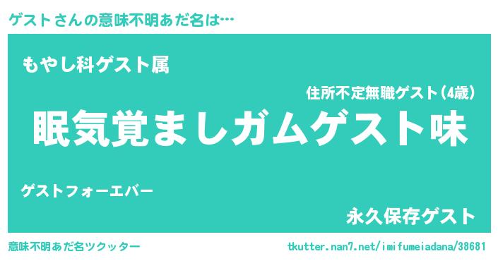 | 男性向けラノベタイトル風あだ名 | 『ノーゲーム・ノーゲスト』 |