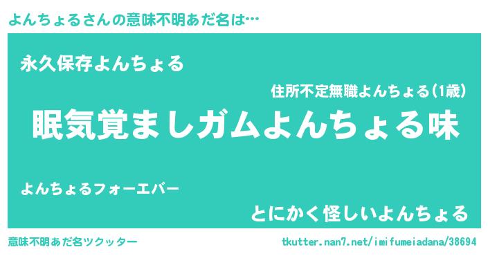 | ヘコむあだ名 | 『よんちょる(爆)』『よんっちょ』 |