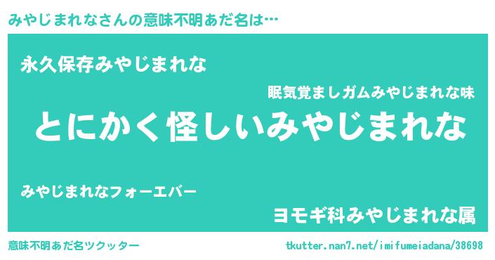 | 女子向けラノベタイトル風あだ名 | 『みやじまれなの卵を拾いまして』 |