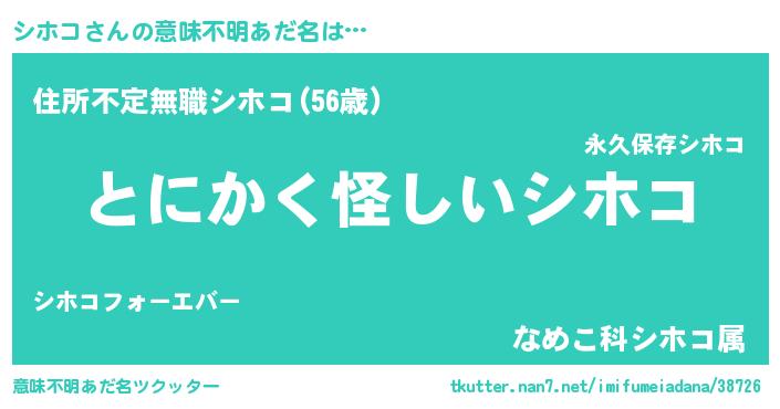 | 胡散臭い通販商品みたいなあだ名 | 『信頼と実績のサプリメント…その名も「シホコ」』 |