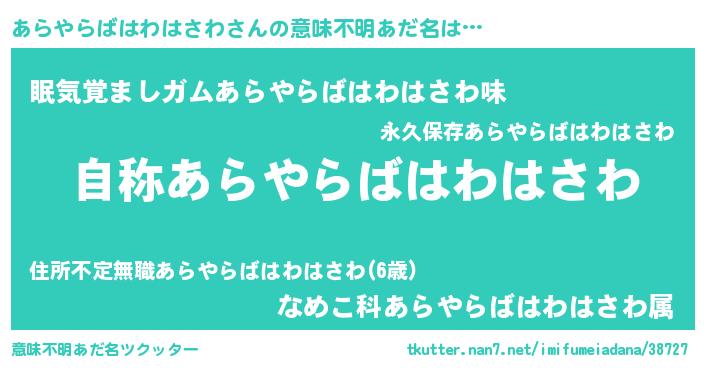 | 男性向けラノベタイトル風あだ名 | 『魔法科高校のあらやらばはわはさわ』 |