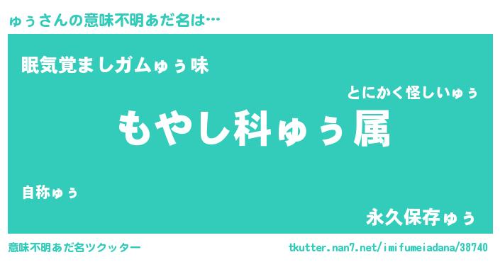 | ヒーロー風カッコイイあだ名 | 『慈愛の使者ゅぅ』『ネオュゥ』 |