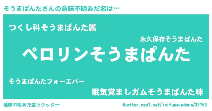 | 男性向けラノベタイトル風あだ名 | 『そうまぱんたの憂鬱』 |