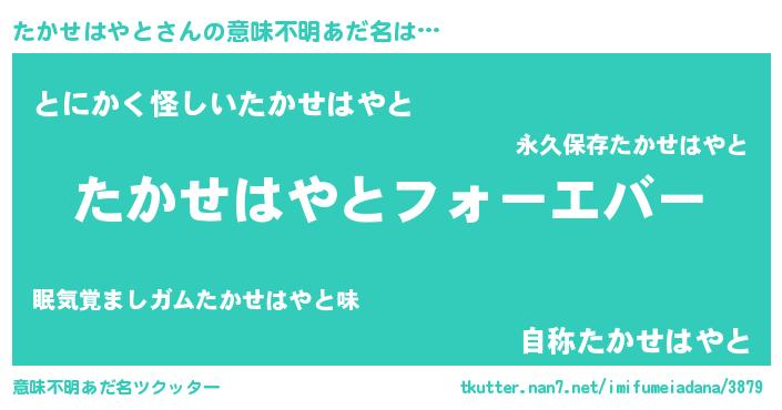 | ポケモン風あだ名 | 『タカセダネ』『ヒタカセハヤト』 |