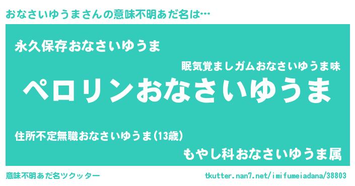 | 男性向けラノベタイトル風あだ名 | 『おなさいゆうまの憂鬱』 |