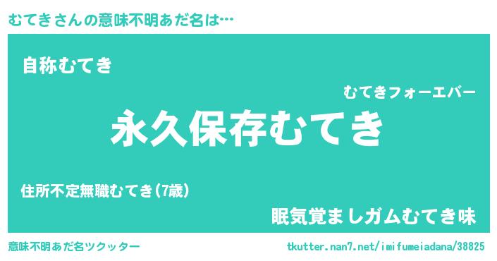 | 男性向けラノベタイトル風あだ名 | 『むてきという概念が存在しない退屈な世界 』 |