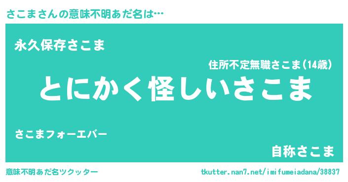 | 男性向けラノベタイトル風あだ名 | 『さこまの嫁は女の子じゃないと思った?』 |