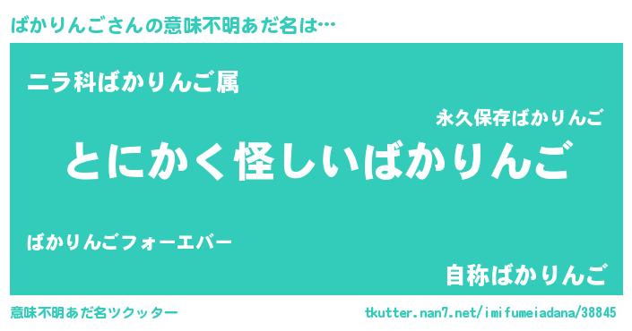 | 男性向けラノベタイトル風あだ名 | 『ばかりんごの嫁は女の子じゃないと思った?』 |