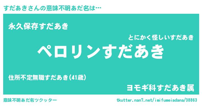 | 胡散臭い通販商品みたいなあだ名 | 『必ず成功する霊験あらたかなお札…その名も「すだあき」』 |
