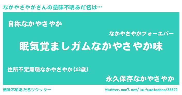 | ヘコむあだ名 | 『なかやさやか(苦笑)』『酢こんぶ』 |