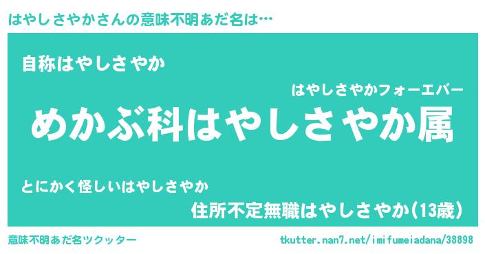 | 伝説のあだ名 | 『秘められし陰陽師はやしさやか』 |