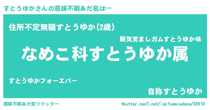 | 男性向けラノベタイトル風あだ名 | 『転生したらすとうゆかだった件』 |