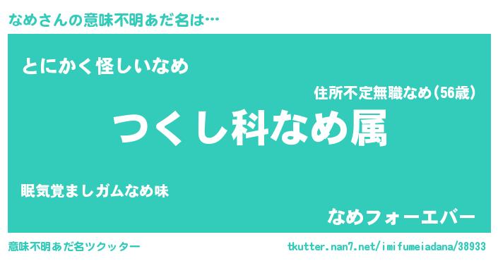 | ポケモン風あだ名 | 『ナメキング』『ヒナメ』『ナメダネ』 |