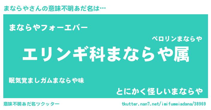 | ヒーロー風カッコイイあだ名 | 『ウルトラまならやマン』『魔戒騎士マナ』 |
