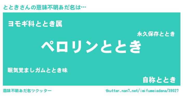 | 男性向けラノベタイトル風あだ名 | 『とときの憂鬱』『トトキスレイヤー』 |