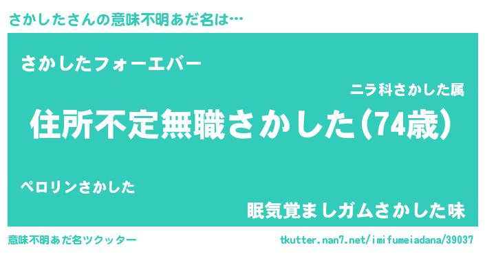 | 男性向けラノベタイトル風あだ名 | 『この素晴らしい世界にさかしたを!』 |