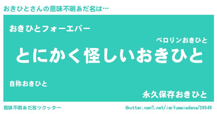 | ヒーロー風カッコイイあだ名 | 『銀牙騎士オキ』『ウルトラおきひとマン』 |