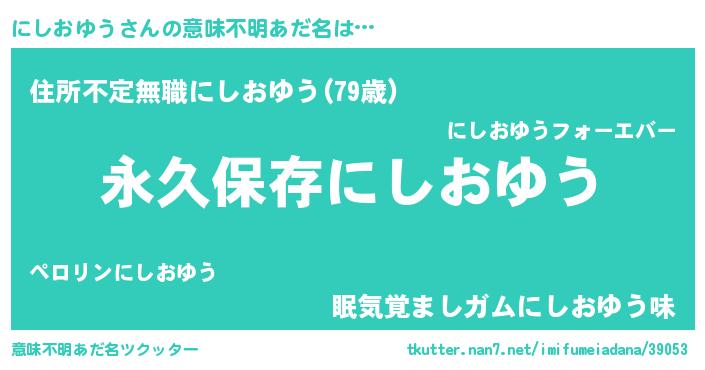 | 男性向けラノベタイトル風あだ名 | 『にしおゆうに滅ぼされるだけの簡単なお仕事です』 |