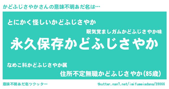 | 欧米人風あだ名 | 『ダルビッシュかどふじさやか』 |
