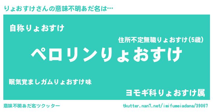 | 男性向けラノベタイトル風あだ名 | 『りょおすけの憂鬱』 |