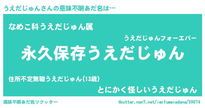 | ヘコむあだ名 | 『うえだじゅん(笑)』『うえぷりん』 |