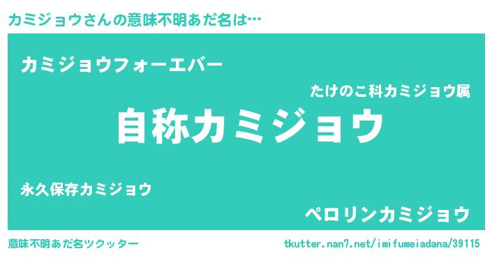 | 男性向けラノベタイトル風あだ名 | 『Re:カミジョウから始める異世界生活』 |