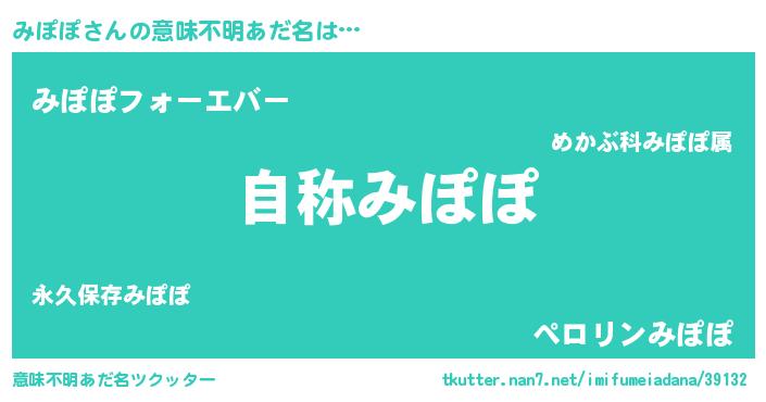 | ヒーロー風カッコイイあだ名 | 『サイバー戦士ミポポ』『スーパーミポポ』 |
