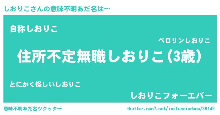 | 男性向けラノベタイトル風あだ名 | 『この素晴らしい世界にしおりこを!』 |