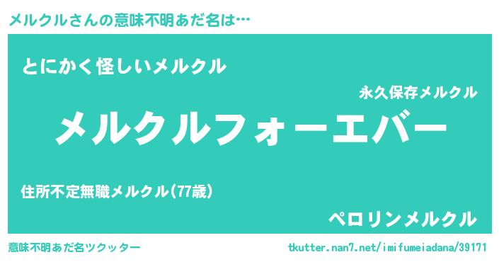 | ポケモン風あだ名 | 『メルクダネ』『メルゴンZ』 |