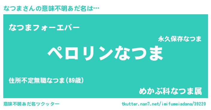 | ポケモン風あだ名 | 『ナツチュウ』『ナツマダネ』 |