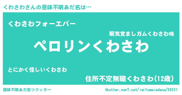 | 胡散臭い通販商品みたいなあだ名 | 『必ず成功する霊験あらたかなお札…その名も「くわさわ」』 |