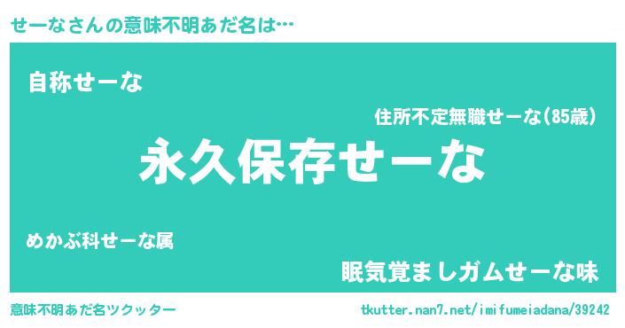 | 胡散臭い通販商品みたいなあだ名 | 『来世でも幸せになれる水素水…その名も「せーな」』 |