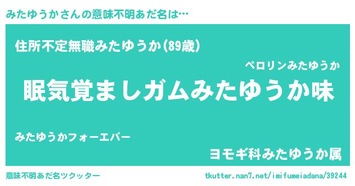 | ヒーロー風カッコイイあだ名 | 『慈愛の使者みたゆうか』『仮面ミタダー』 |