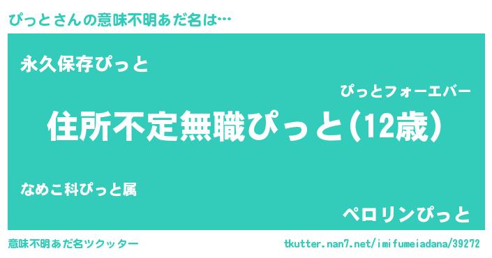 | 男性向けラノベタイトル風あだ名 | 『この素晴らしい世界にぴっとを!』 |