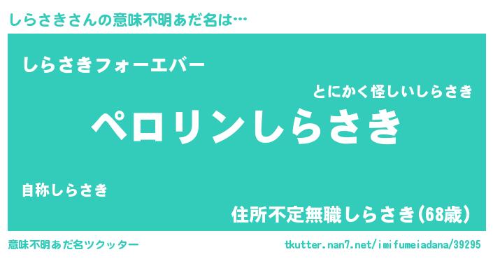 | 男性向けラノベタイトル風あだ名 | 『しらさきの憂鬱』『魔弾の王としらさき』 |