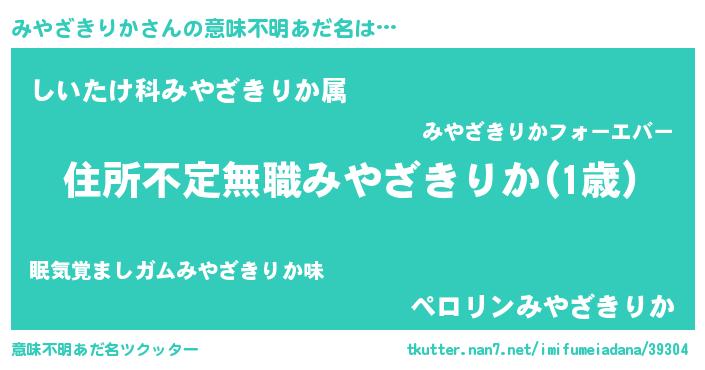 | ヒーロー風カッコイイあだ名 | 『仮面ミヤダー』『スーパーミヤザキリカ』 |
