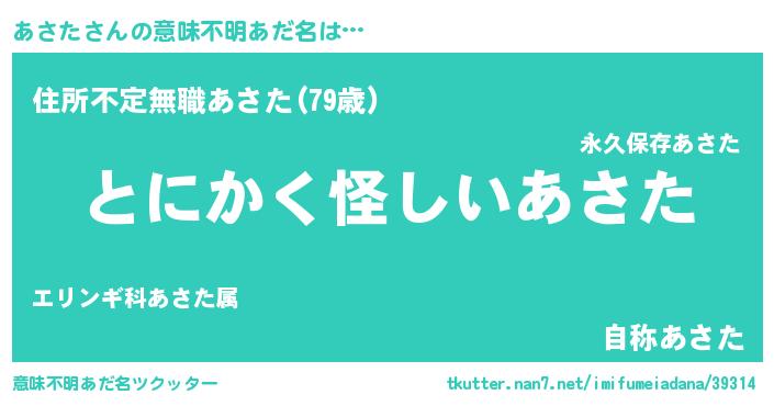 | 女子向けラノベタイトル風あだ名 | 『あさたは平凡を望む』 |