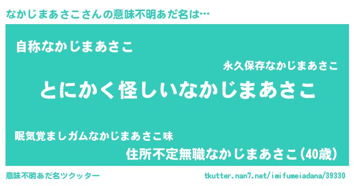 | 胡散臭い通販商品みたいなあだ名 | 『信頼と実績のサプリメント…その名も「なかじまあさこ」』 |
