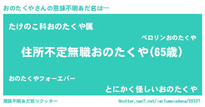 | 男性向けラノベタイトル風あだ名 | 『おのたくやに滅ぼされるだけの簡単なお仕事です』 |