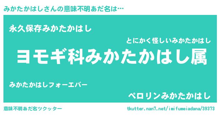 | 男性向けラノベタイトル風あだ名 | 『みかたかはし~年齢イコール彼女いない歴の魔法使い~』 |