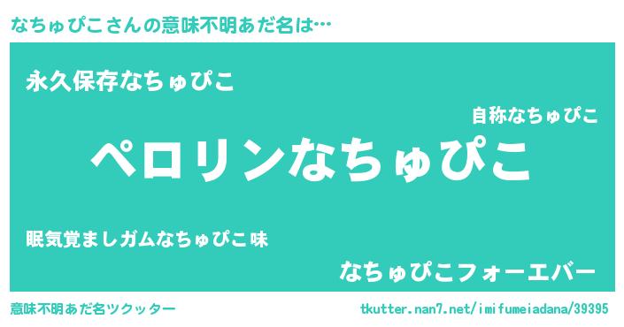 | 欧米人風あだ名 | 『なちゅぴこ・ステッグマイヤー』 |