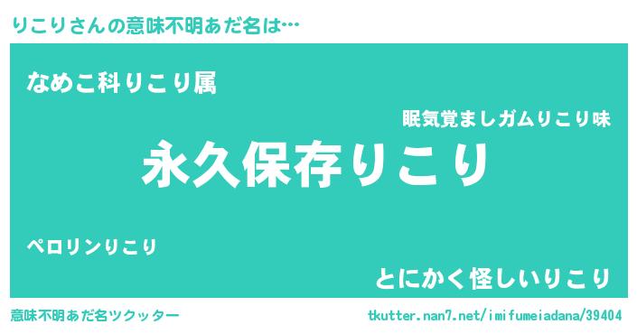 | 男性向けラノベタイトル風あだ名 | 『りこりという概念が存在しない退屈な世界 』 |